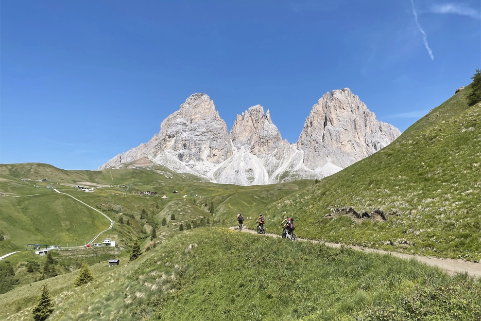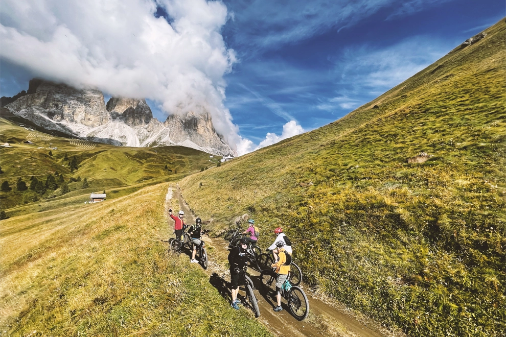 Il tour in ebike Sassolungo – Sassopiatto è un classico intramontabile dei tour in emtb della Val di Fassa.
