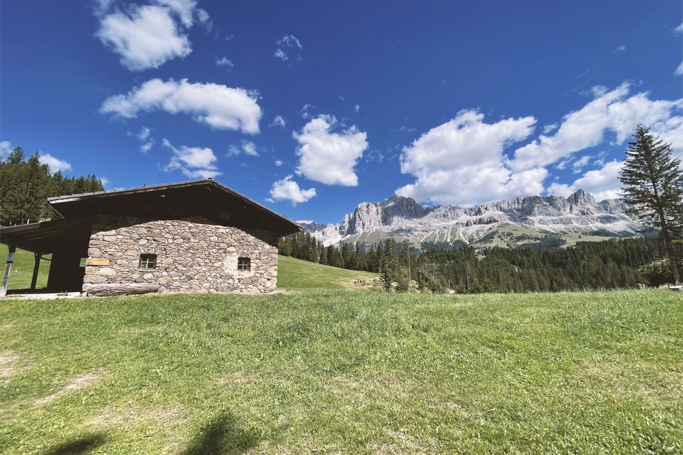 Percorrendo una serie di comode strade forestali ci si mantiene inizialmente sullo spartiacque boscoso che separa le valli di Ega e Tires, toccando in sequenza i rifugi Schiller e Hagner per arrivare così al in ebike al passo Nigra. E’ in questa zona, che la vista si apre sulle meravigliose vette circostanti, dal vicino e imponente Catinaccio fino ai più lontani Scilliar e Latemar.